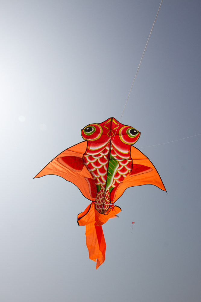 Modern version of a typical Chinese Goldfish kite. No flying characteristics (yet). |