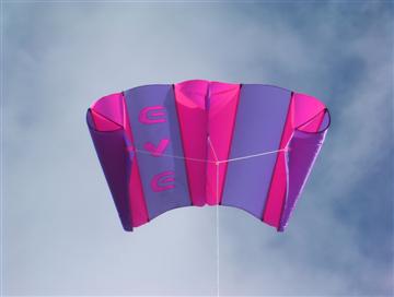 The bigger version of Double Parasled Mini (30%) . Eve is my nickname at some forums, this was the origin of my recent nickname Evekites. Plans were in the German magazine Kite & Friends 8/2005. No flying characteristics (yet).