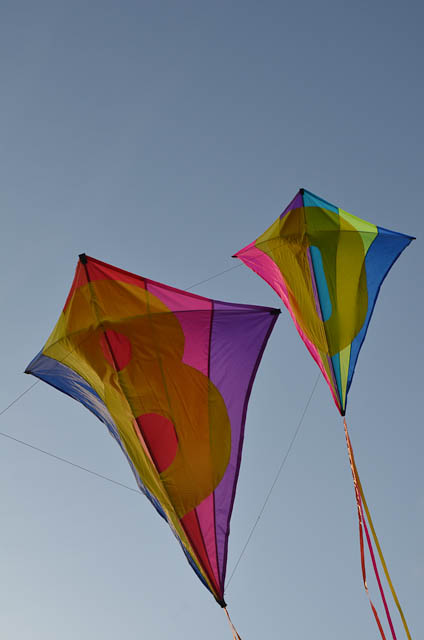 A gift from a friend, redecorated with numbers 8 and 0 for the birthday of my mother in law. To be shown during a weekend at sea with the family. Boven windkracht 3 klapt de vlieger bijna dubbel. |