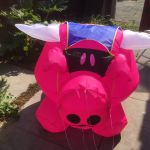 The original from HQ was made with a very low quality fabric and didn't stay inflated, so I decided to rebuild it with kite fabric. (Porky Pete 2), with the left overs I create this super pig, with wings, mask and off course a cape. No flying characteristics (yet). |